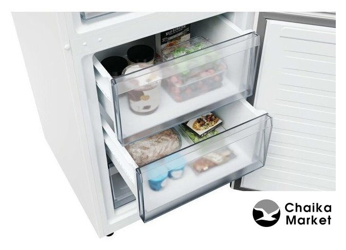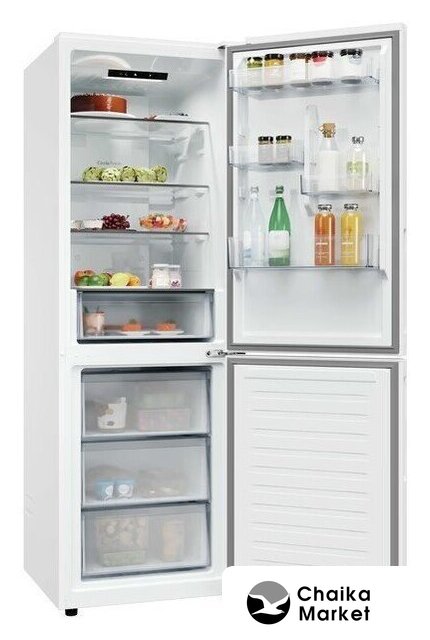 отдельностоящий, полный No Frost, электронное управление, полезный объём: 387 л (277 + 110 л), инверторный компрессор, зона свежести, перенавешиваемые двери, складная полка, полка для вина, лоток для яиц, 59.5x68.2x203 см, серебристый