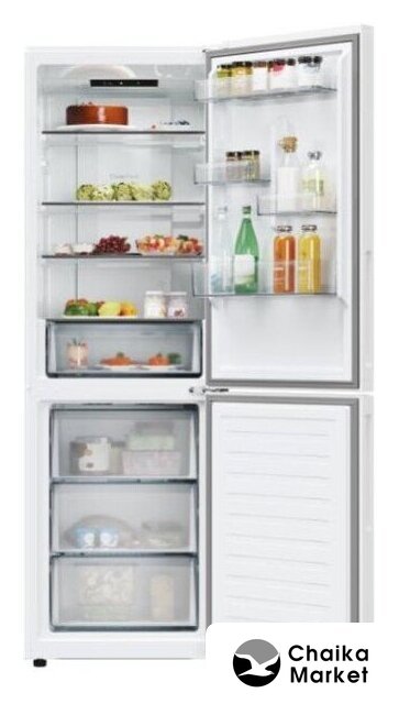 отдельностоящий, без No Frost, электронное управление, класс A++, полезный объём: 287 л (207 + 80 л), перенавешиваемые двери, лоток для яиц, 59.5x59x178.5 см, белый
