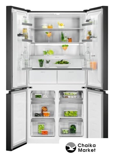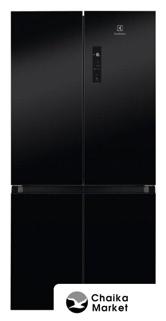 отдельностоящий, полный No Frost, сенсорное управление, полезный объём: 562 л (371 + 191 л), диспенсер, полка для вина, лоток для яиц, 90.8x76.2x178.7 см, черный