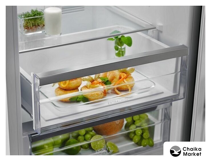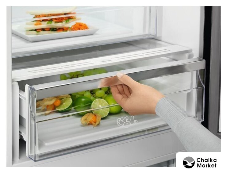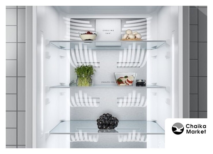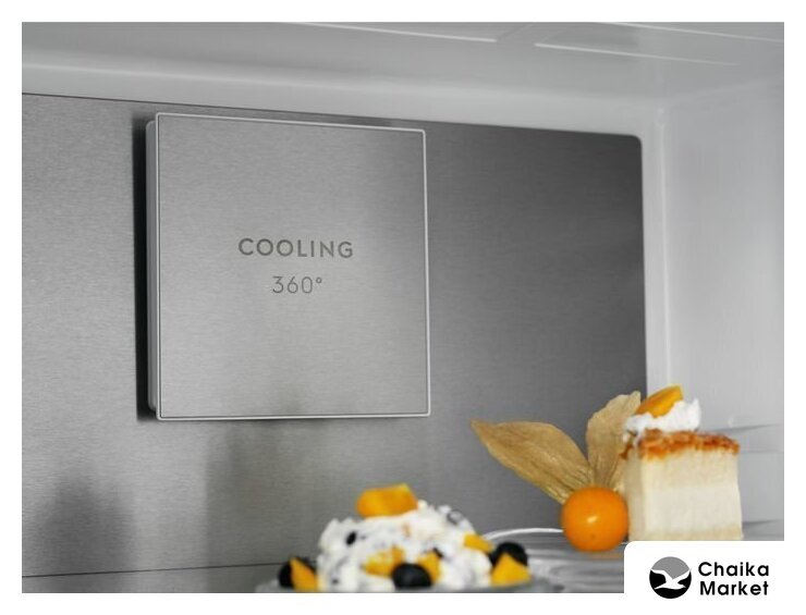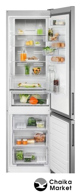 отдельностоящий, полный No Frost, механическое управление, полезный объём: 282 л (193 + 89 л), перенавешиваемые двери, лоток для яиц, 60x66x176 см, нержавеющая сталь
