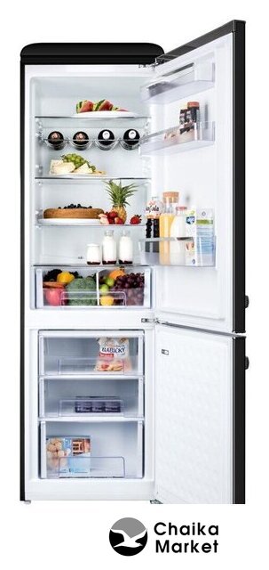 отдельностоящий, полный No Frost, сенсорное управление, класс A++, полезный объём: 368 л (255 + 113 л), инверторный компрессор, зона свежести, полка для вина, лоток для яиц, 60x66.3x200 см, черный