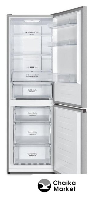 отдельностоящий, полный No Frost, электронное управление, класс A++, полезный объём: 331 л (235 + 96 л), перенавешиваемые двери, лоток для яиц, 60x59.2x200 см, серебристый