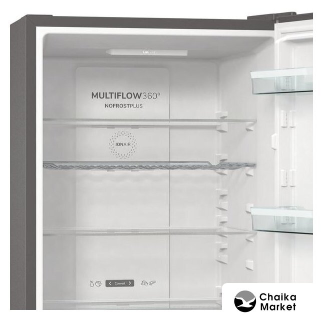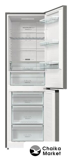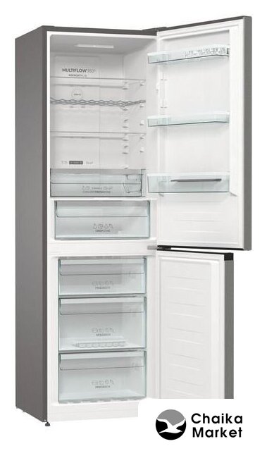 отдельностоящий, полный No Frost, электронное управление, полезный объём: 279 л (189 + 90 л), перенавешиваемые двери, лоток для яиц, 61x66x175 см, серебристый/серый