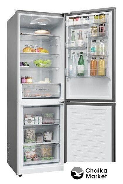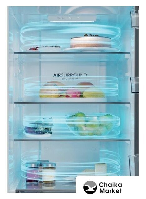 отдельностоящий, полный No Frost, сенсорное управление, полезный объём: 532 л (347 + 185 л), инверторный компрессор, лоток для яиц, 90x66x177 см, серебристый/нержавеющая сталь