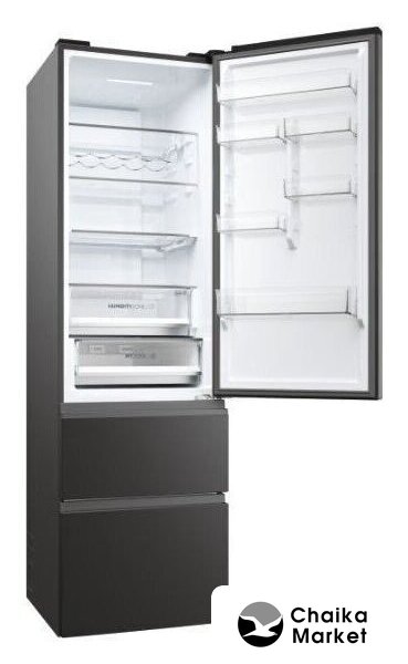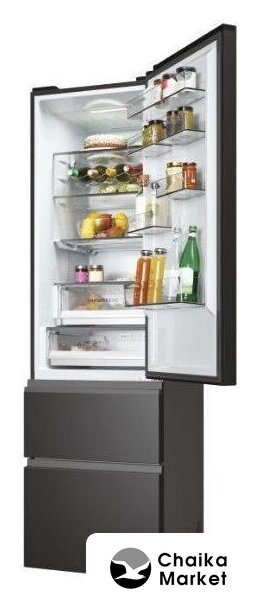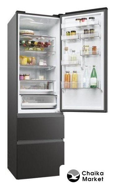 отдельностоящий, полный No Frost, сенсорное управление, класс A++, полезный объём: 368 л (255 + 113 л), инверторный компрессор, зона свежести, полка для вина, лоток для яиц, 60x66.3x200 см, черный