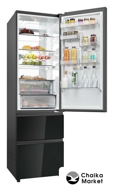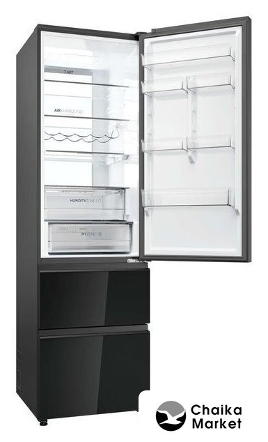 отдельностоящий, без No Frost, электронное управление, полезный объём: 372 л, инверторный компрессор, зона свежести, перенавешиваемые двери, нулевой зазор, полка для вина, 59.5x60x185.6 см, черный