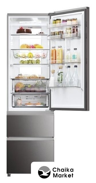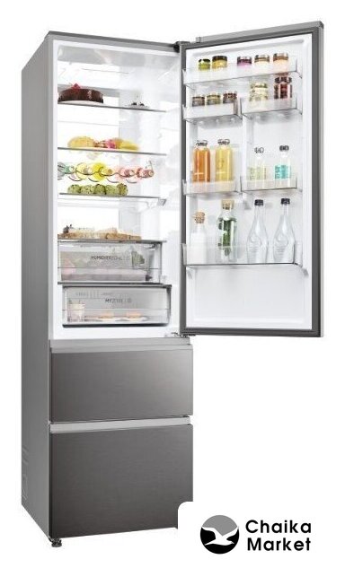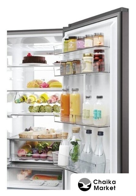 отдельностоящий, полный No Frost, сенсорное управление, полезный объём: 550 л (358 + 192 л), инверторный компрессор, полка для вина, лоток для яиц, 91.5x67x178.6 см, черный металлик