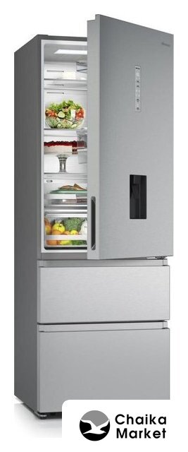 отдельностоящий, полный No Frost, сенсорное управление, полезный объём: 467 л (311 + 156 л), зона свежести, лоток для яиц, 83.3x65x181.5 см, серебристый