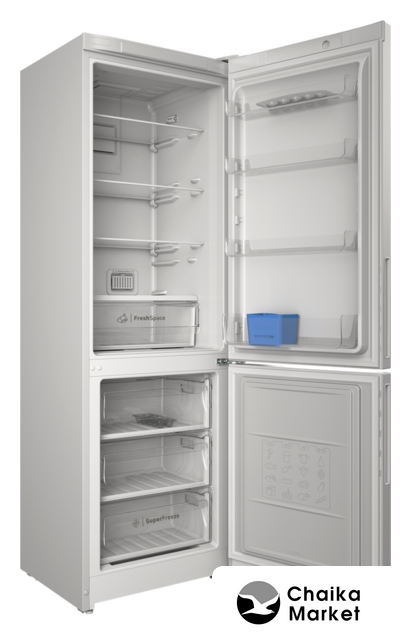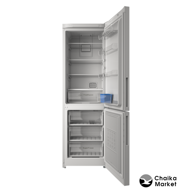 отдельностоящий, без No Frost, механическое управление, класс A, полезный объём: 373 л (272 + 101 л), перенавешиваемые двери, лоток для яиц, 60x63x205 см, белый