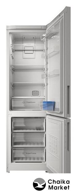 отдельностоящий, полный No Frost, электронное управление, класс A, полезный объём: 298 л (220 + 78 л), перенавешиваемые двери, лоток для яиц, 60x64x185 см, белый