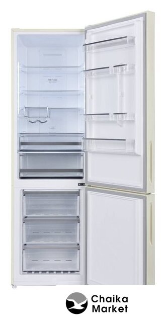 отдельностоящий, No Frost (морозильная камера), электронное управление, класс A, полезный объём: 319 л (225 + 94 л), инверторный компрессор, перенавешиваемые двери, подставка-лоток для бутылок, лоток для яиц, 59.7x67.5x185.5 см, бежевый