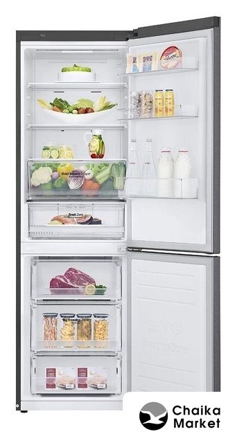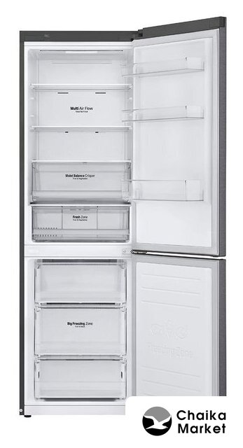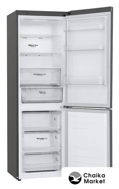 отдельностоящий, полный No Frost, электронное управление, полезный объём: 341 л (234 + 107 л), инверторный компрессор, перенавешиваемые двери, лоток для яиц, 59.5x67.5x186 см, серебристый