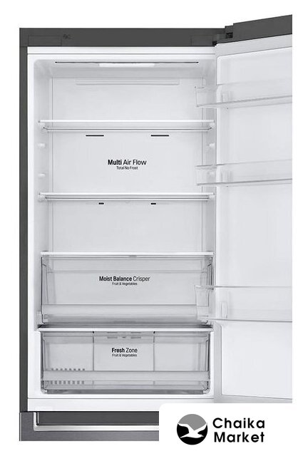 отдельностоящий, полный No Frost, электронное управление, полезный объём: 387 л (277 + 110 л), инверторный компрессор, зона свежести, перенавешиваемые двери, складная полка, полка для вина, лоток для яиц, 59.5x68.2x203 см, серебристый