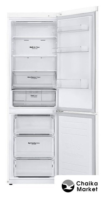 отдельностоящий, No Frost (морозильная камера), электронное управление, класс A, полезный объём: 319 л (225 + 94 л), инверторный компрессор, перенавешиваемые двери, подставка-лоток для бутылок, лоток для яиц, 59.7x67.5x185.5 см, бежевый