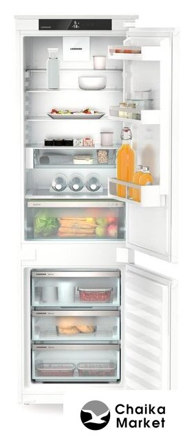 встраиваемый, скользящие направляющие, No Frost (морозильная камера), электронное управление, класс A++, полезный объём: 273 л (190 + 83 л), зона свежести, складная полка, лоток для яиц, 54.1x54.5x177 см, белый