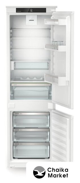 встраиваемый, скользящие направляющие, без No Frost, сенсорное управление, класс A++, полезный объём: 255 л (201 + 54 л), зона свежести, перенавешиваемые двери, складная полка, лоток для яиц, 54.1x54.5x177 см, белый