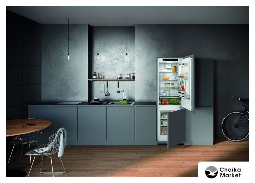 встраиваемый, жесткое, No Frost (морозильная камера), сенсорное управление, класс A++, полезный объём: 251 л (182 + 69 л), автодоводчик дверей, складная полка, подставка-лоток для бутылок, лоток для яиц, 55.9x54.6x177 см, белый