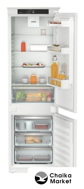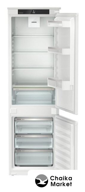 встраиваемый, жесткое, No Frost (морозильная камера), сенсорное управление, класс A+, полезный объём: 253 л (183 + 70 л), перенавешиваемые двери, лоток для яиц, 55.9x54.6x177 см, белый