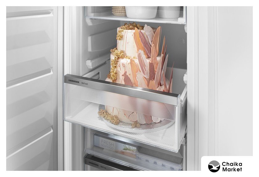 встраиваемый, жесткое, No Frost (морозильная камера), сенсорное управление, класс A+, полезный объём: 253 л (183 + 70 л), перенавешиваемые двери, лоток для яиц, 55.9x54.6x177 см, белый