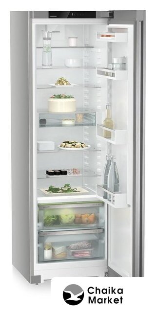 отдельностоящий, без No Frost, сенсорное управление, класс A+++, полезный объём: 377 л, зона свежести, перенавешиваемые двери, складная полка, лоток для яиц, 59.7x67.5x185.5 см, серебристый
