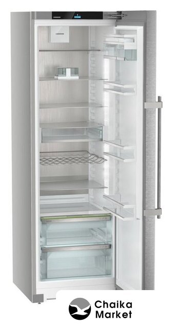 отдельностоящий, без No Frost, электронное управление, полезный объём: 386 л, инверторный компрессор, зона свежести, перенавешиваемые двери, складная полка, лоток для яиц, масленка, отделка: защита от отпечатков, 59.7x67.5x185.5 см, темная сталь