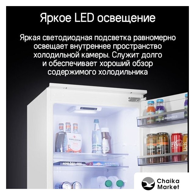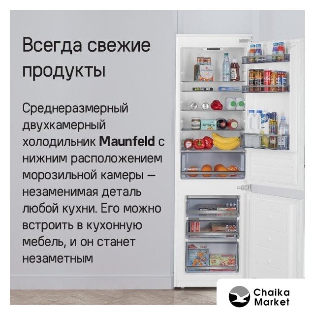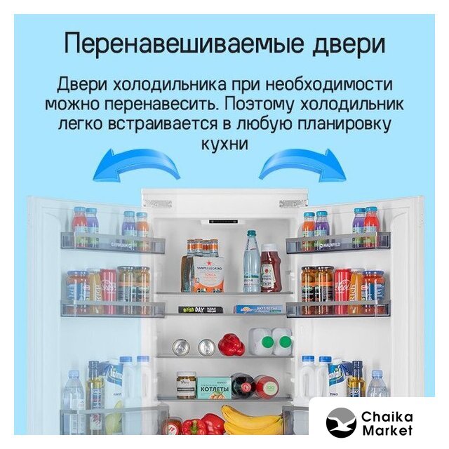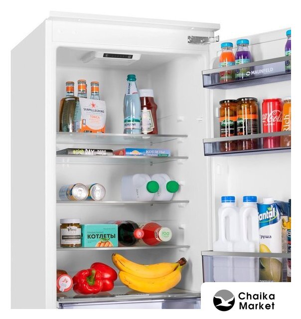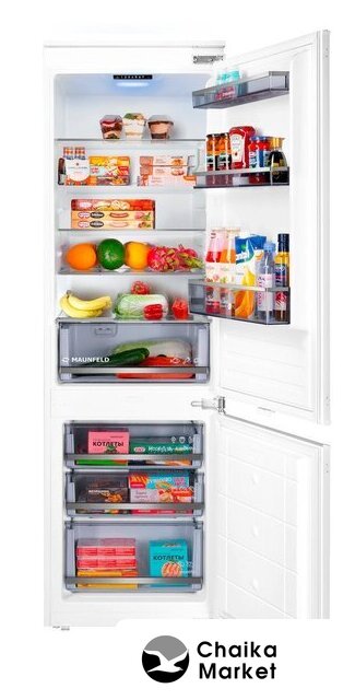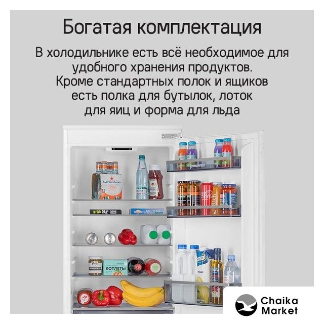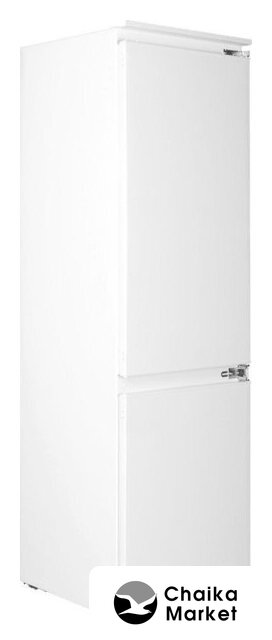 встраиваемый, жесткое, без No Frost, сенсорное управление, полезный объём: 264 л (183 + 81 л), перенавешиваемые двери, лоток для яиц, 55.9x54.6x177 см, белый