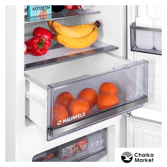 встраиваемый, скользящие направляющие, полный No Frost, электронное управление, полезный объём: 250 л (182 + 68 л), зона свежести, перенавешиваемые двери, лоток для яиц, 54x54.5x177 см, белый