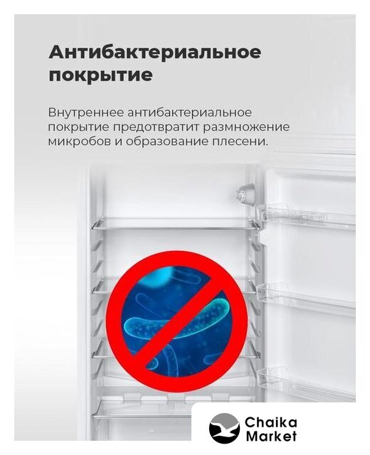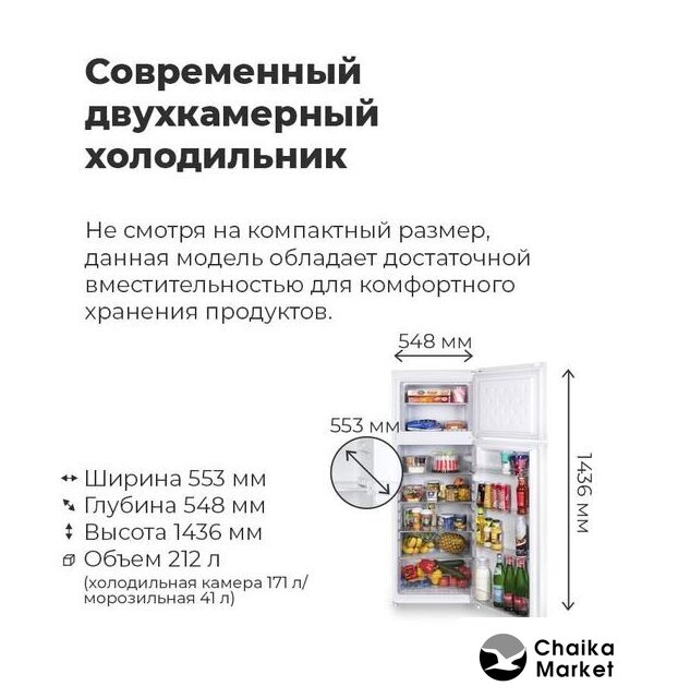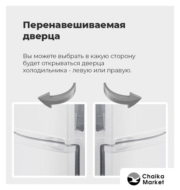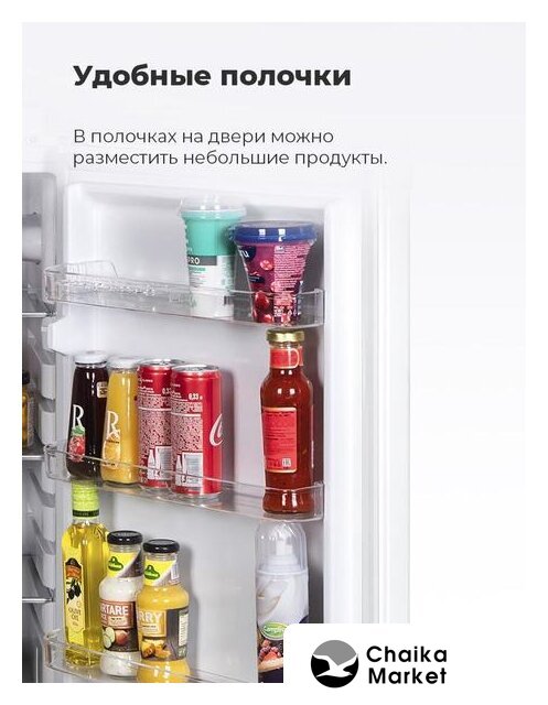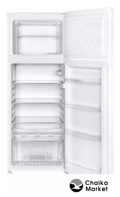 отдельностоящий, без No Frost, электронное управление, класс A+, полезный объём: 301 л (182 + 119 л), перенавешиваемые двери, лоток для яиц, 59.5x62.7x176.8 см, белый