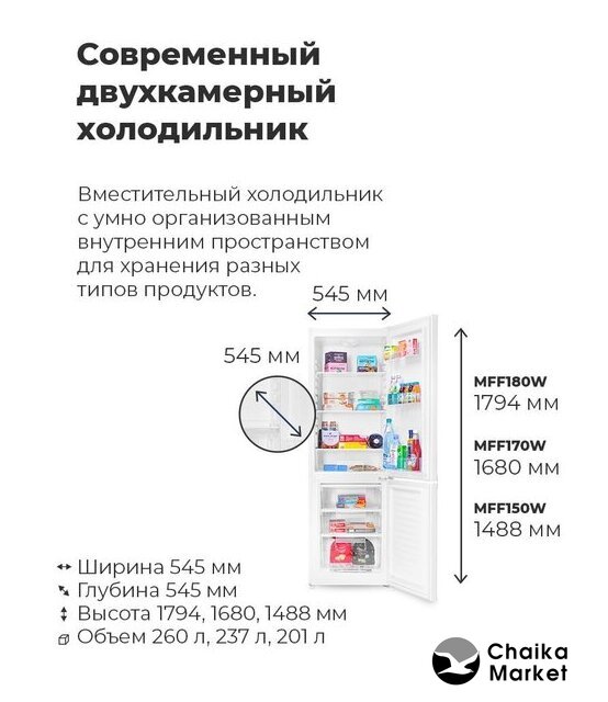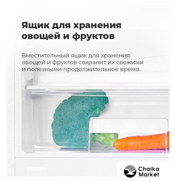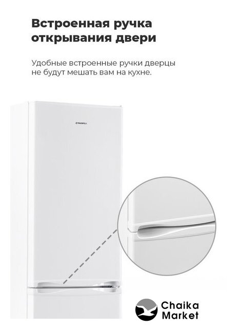 отдельностоящий, без No Frost, механическое управление, класс A+, полезный объём: 265 л (195 + 70 л), перенавешиваемые двери, лоток для яиц, 55.5x60x176.5 см, белый