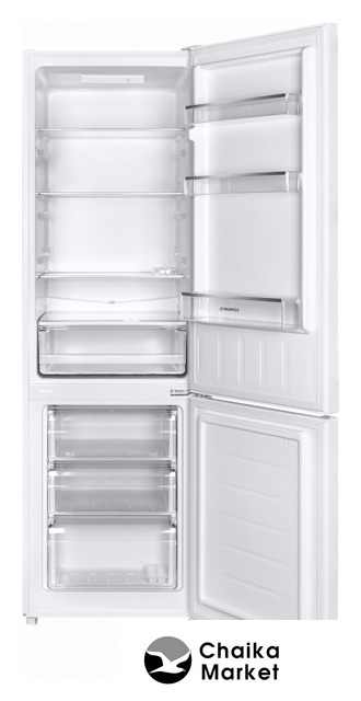 отдельностоящий, без No Frost, механическое управление, класс A, полезный объём: 373 л (272 + 101 л), перенавешиваемые двери, полка для вина, лоток для яиц, 60x63x205 см, белый