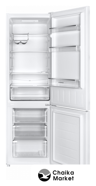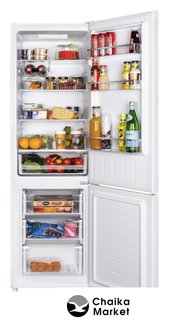 отдельностоящий, без No Frost, механическое управление, класс A, полезный объём: 354 л (225 + 129 л), перенавешиваемые двери, полка для вина, лоток для яиц, 60x63x205 см, белый
