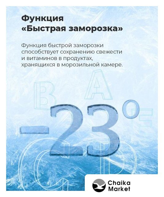 | Режимы и функции | суперзаморозка, независимая регулировка температуры, сигнал открытой двери |