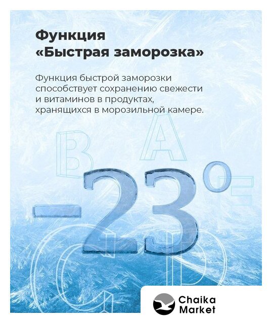 | Режимы и функции | суперзаморозка, независимая регулировка температуры, сигнал открытой двери |