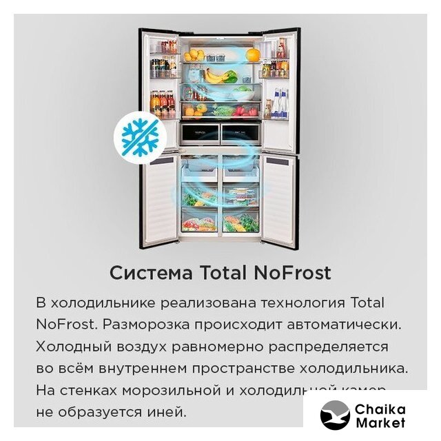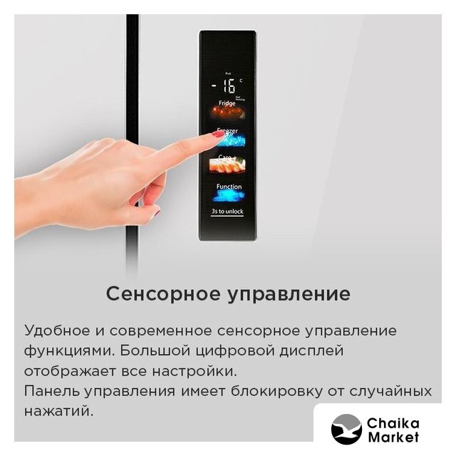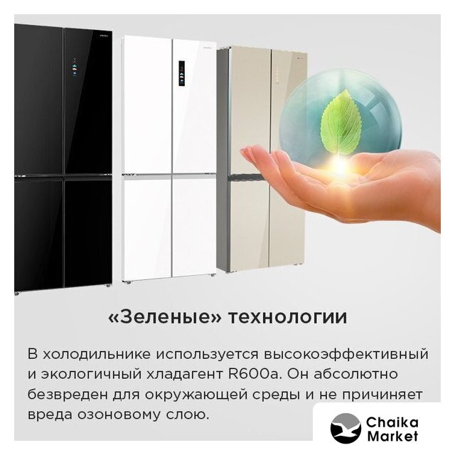 отдельностоящий, сенсорное управление, класс A+, полезный объём: 647 л (418 + 229 л), инверторный компрессор, 91.2x71.6x178 см, черный
