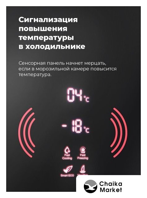 | Режимы и функции | суперзаморозка, суперохлаждение, независимая регулировка температуры, ECO, отпуск, сигнал открытой двери |