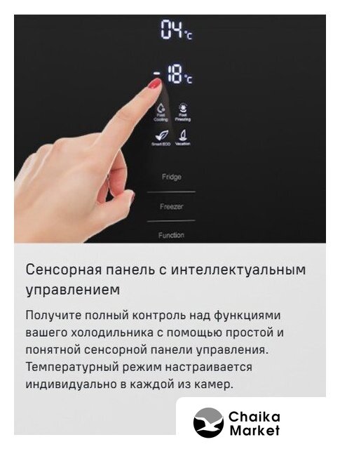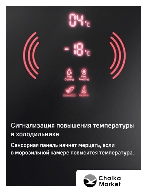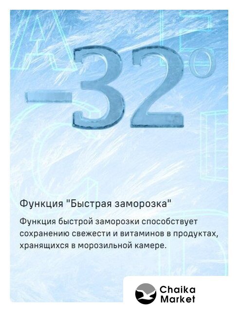 | Режимы и функции | суперзаморозка, суперохлаждение, независимая регулировка температуры, ECO, отпуск, сигнал открытой двери, блокировка от детей |