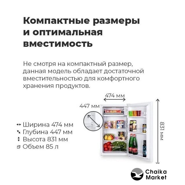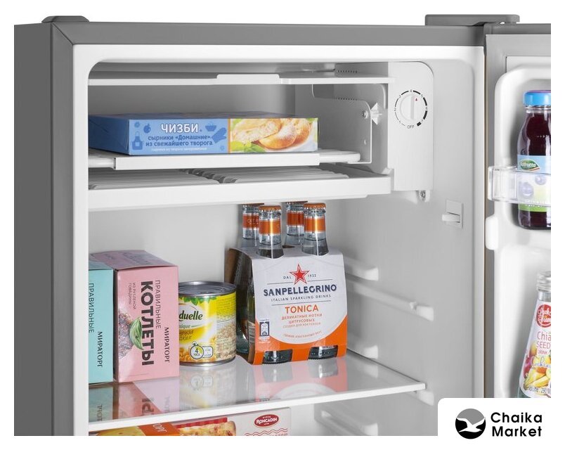 отдельностоящий, без No Frost, механическое управление, класс A+, полезный объём: 85 л, перенавешиваемые двери, лоток для яиц, 47.4x44.7x83.1 см, серебристый
