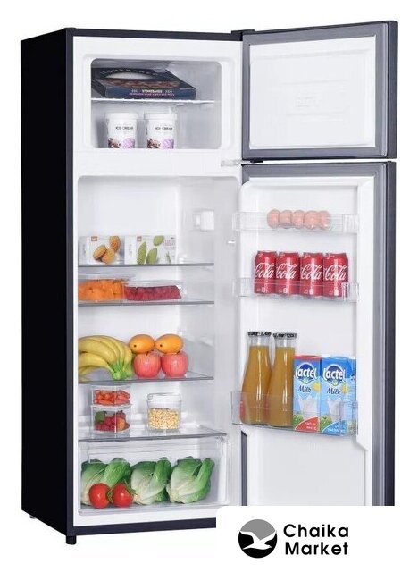 отдельностоящий, без No Frost, механическое управление, инверторный компрессор, перенавешиваемые двери, лоток для яиц, 55x57x122 см, черный/темная сталь
