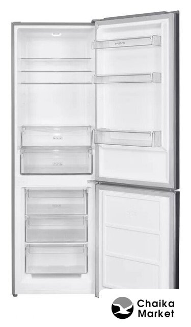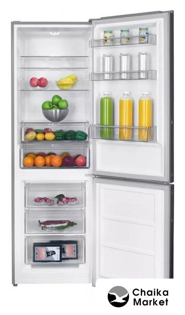 отдельностоящий, без No Frost, электронное управление, полезный объём: 260 л (186 + 74 л), инверторный компрессор, перенавешиваемые двери, лоток для яиц, 54.5x55x176 см, нержавеющая сталь