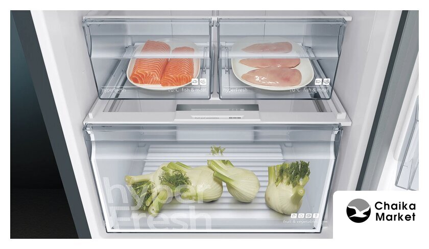 отдельностоящий, полный No Frost, электронное управление, полезный объём: 321 л (218 + 103 л), зона свежести, перенавешиваемые двери, полка для вина, лоток для яиц, отделка: защита от отпечатков, 60x66.5x186 см, нержавеющая сталь