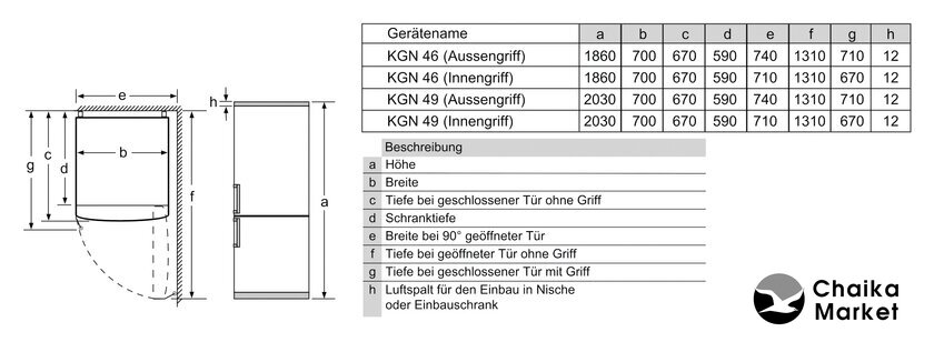 отдельностоящий, No Frost (морозильная камера), сенсорное управление, класс A+++, полезный объём: 349 л (255 + 94 л), инверторный компрессор, зона свежести, перенавешиваемые двери, складная полка, лоток для яиц, 59.7x67.5x201.5 см, серебристый