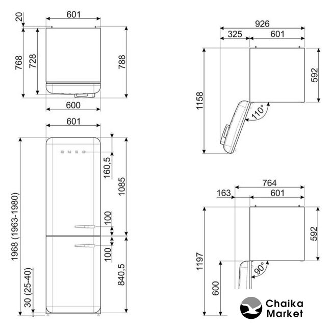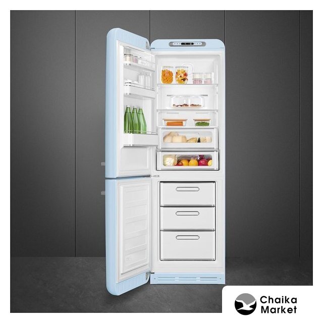 отдельностоящий, полный No Frost, электронное управление, класс A+++, полезный объём: 331 л (234 + 97 л), инверторный компрессор, зона свежести, лоток для яиц, отделка: ретродизайн, 60.1x78.8x198 см, зеленый