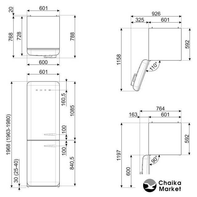 отдельностоящий, полный No Frost, механическое управление, класс A++, полезный объём: 467 л (351 + 116 л), зона свежести, лоток для яиц, отделка: ретродизайн, 79.6x85.1x177.7 см, белый