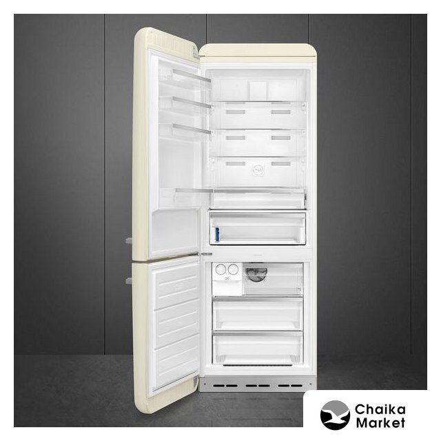 отдельностоящий, полный No Frost, электронное управление, класс D, полезный объём: 481.1 л (343.7 + 137.4 л), инверторный компрессор, отделка: ретродизайн, 70.6x77.1x205 см, голубой