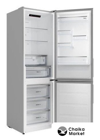 отдельностоящий, без No Frost, электронное управление, класс A++, полезный объём: 287 л (207 + 80 л), перенавешиваемые двери, лоток для яиц, 59.5x59x178.5 см, серый
