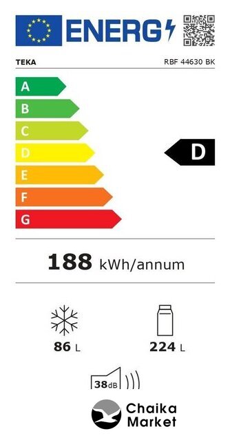 отдельностоящий, полный No Frost, электронное управление, класс A++, полезный объём: 331 л (235 + 96 л), перенавешиваемые двери, лоток для яиц, 60x59.2x200 см, черный