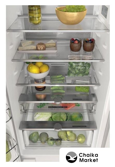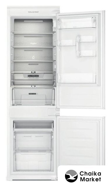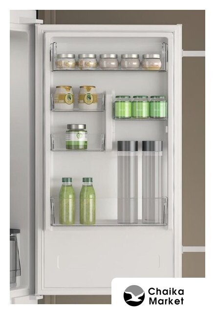 встраиваемый, скользящие направляющие, без No Frost, сенсорное управление, класс A+, полезный объём: 264 л (183 + 81 л), перенавешиваемые двери, лоток для яиц, 54.1x54.5x177 см, белый