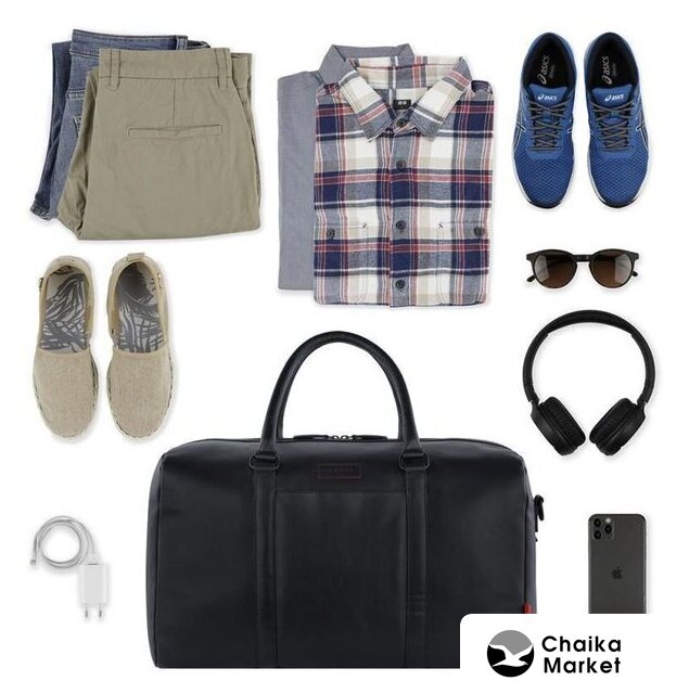 для мужчин, натуральная кожа, 1 отделение, черный, 64×37×27 см