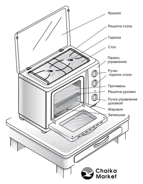 электрический, мощность духовки 1600 Вт, 32 л, конфорки, вертел