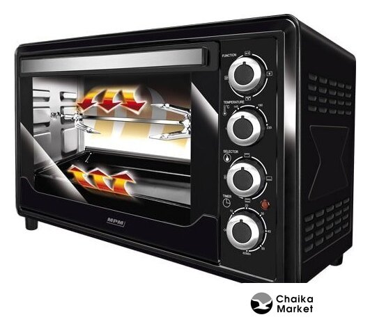 электрический, мощность духовки 1800 Вт, 14 л, конвекция, вертел
